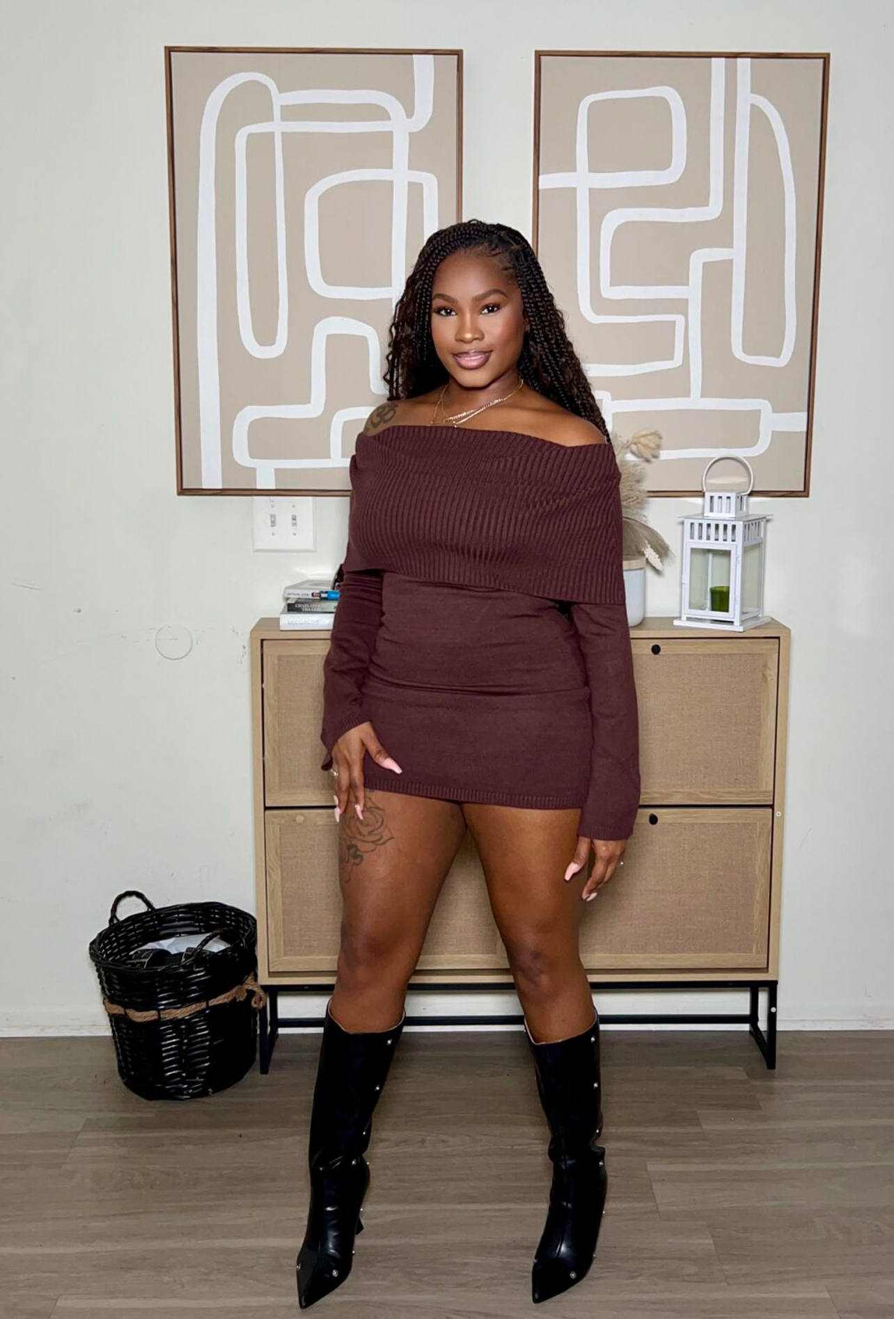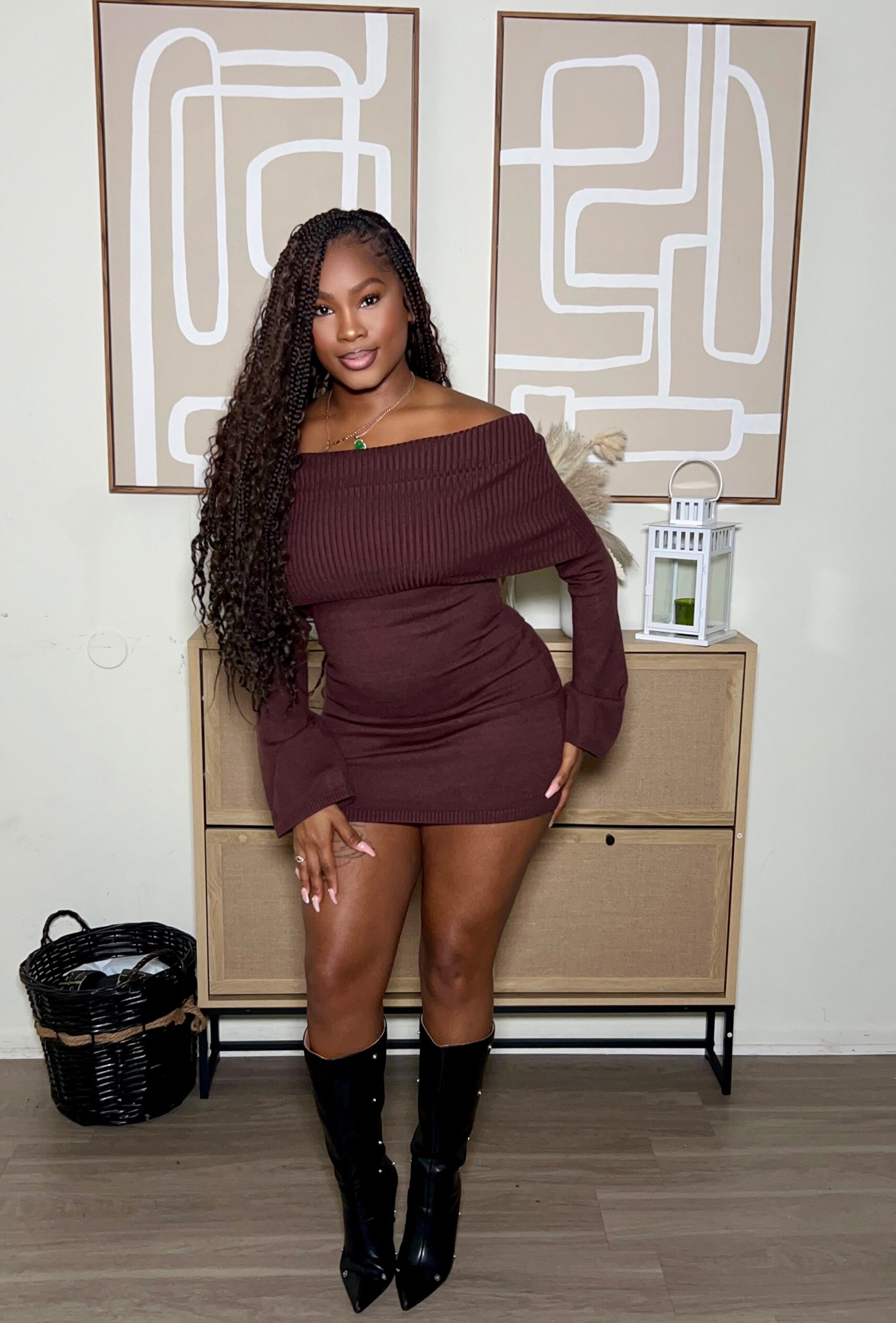 Stay cozy yet effortlessly chic in our Fall For Me Sweater Dress. Featuring a flattering off-shoulder neckline, soft ribbed knit fabric, and a curve-hugging fit, this dress is perfect for day-to-night looks. Pair it with thigh-high boots for a bold statement or keep it casual with ankle booties. Available in rich chocolate brown and classic cream.