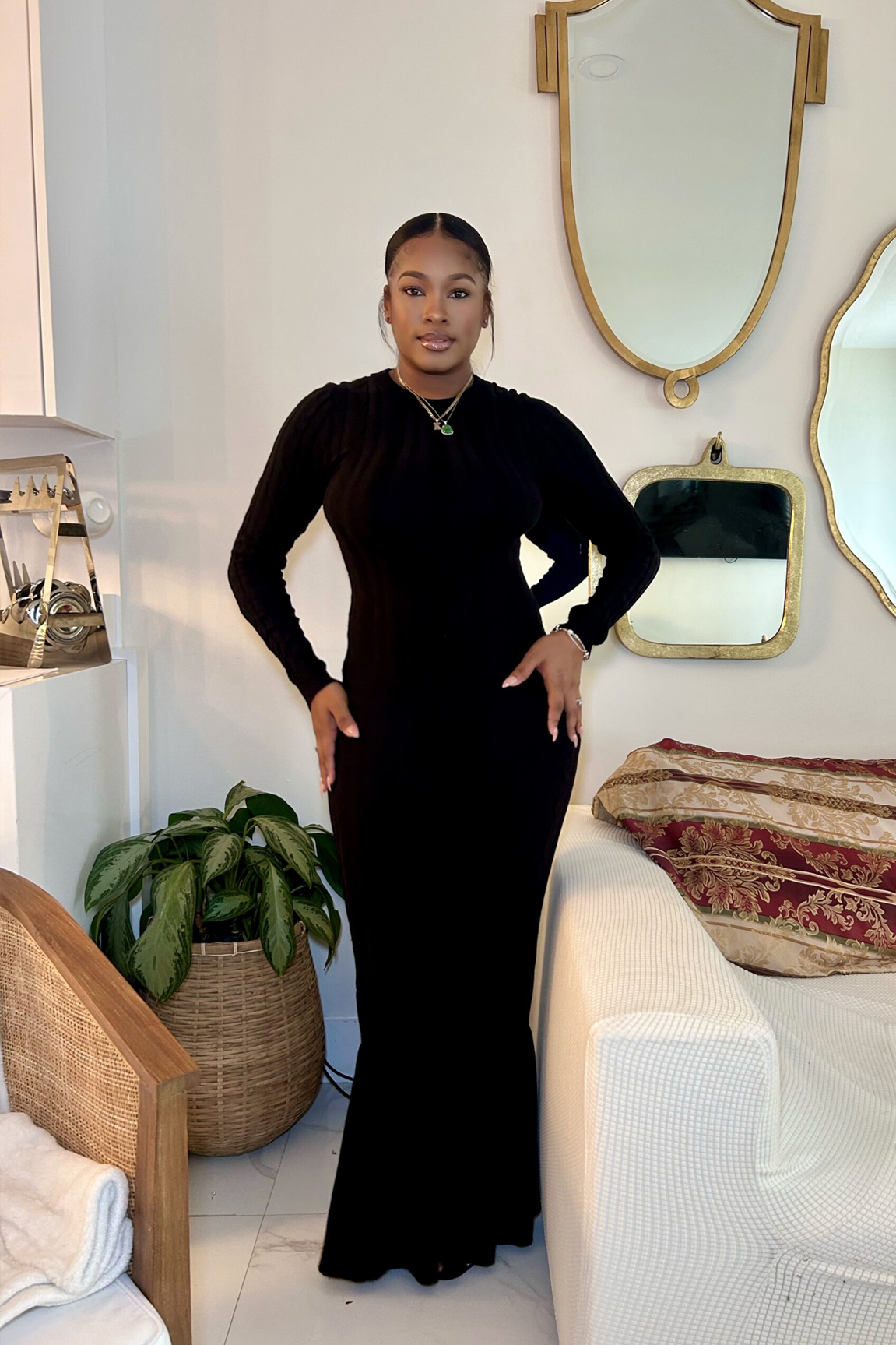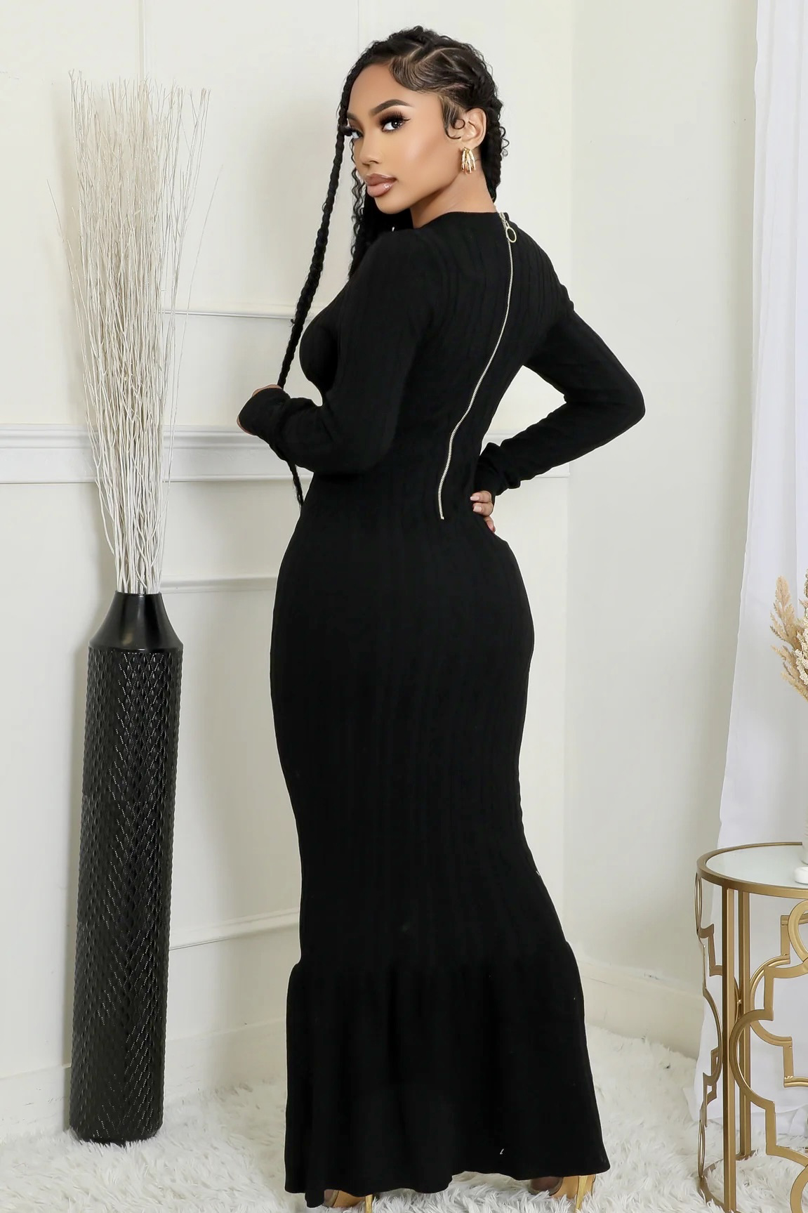 Timeless Maxi Dress – Effortless elegance meets sleek sophistication. This figure-hugging maxi dress is designed to accentuate your curves with a flawless silhouette. Featuring a classic round neckline, long sleeves, and a mermaid-style hem, it’s the perfect blend of chic and timeless. Whether you’re stepping out for a dinner date, a special event, or a night out, this black maxi dress is your go-to for an effortlessly polished look. Style it with statement accessories and heels to complete the vibe.
